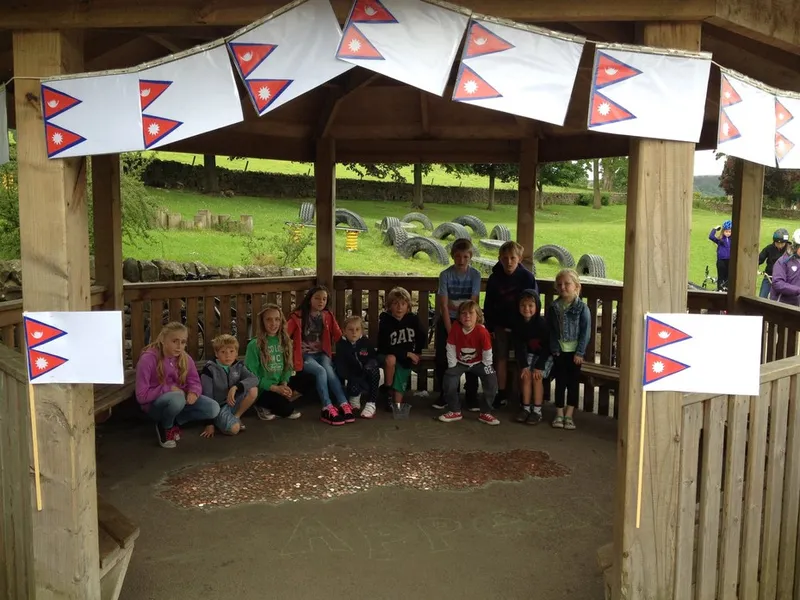We have spent the day raising money for the people of Nepal who suffered in the earthquake. We donated money to come in our own clothes and we covered a map of Nepal with coins. The School Council have been busy making flags and counting money.